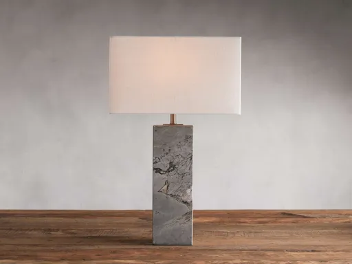 Add a beautiful, organic feel to any aesthetic with our Oren Table Lamp, meticulously handcrafted by our artisan partners in India. Each table lamp base features stunning black or grey-toned stone cut and arranged by hand with a matte finish and rectangular white shade to complete the look.