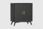 Enhance your living space with the Mid Century Modern 32" Black 2 Door Bar Cabinet. This stylish and functional piece is crafted from high-quality mahogany solids and veneer, offering a sleek black finish that complements any modern or contemporary decor. Perfect for storing your favorite beverages and barware, this cabinet features two drawers with ball bearing metal glides and English dovetail construction for durability and ease of use. You will love having this chest of drawers in your bedroom.