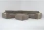 The Amallo Mocha Brown Natural Fabric 141" 5 Piece Modular L-Shaped Sectional with Ottoman is perfect for any living room. Its modern design and symmetrical layout make it a great fit for contemporary homes. The mellow mocha color and 100% polyester fabric offer a firm and comfortable seating experience.