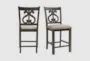 The Mumford Brown Wood 25" Counter Height Stool Set of 2 offers a charming addition to your dining room or kitchen. These stools feature a farmhouse design, accentuated by their armless structure and tall build. Crafted from acacia solid wood and plywood, they promise durability and comfort in any dining setting.