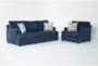 Colby Navy Blue Fabric 2 Piece Queen Memory Foam Sleeper Sofa Bed & Armchair