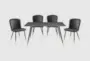 Enhance your dining experience with the Dozen Black Faux Marble Metal 59" Rectangular Dining Table Set for 4. This modern set features a sleek black metal frame and a stunning faux marble top that adds a touch of sophistication to your dining room or kitchen.