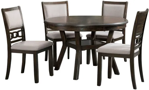 Bring a warm, modern touch to your dining room with the Amherst 5-piece gray/walnut dining set. Featuring a walnut-finished table and four gray upholstered chairs, this set blends natural wood tones with soft texturesperfect for stylish family meals and entertaining guests.