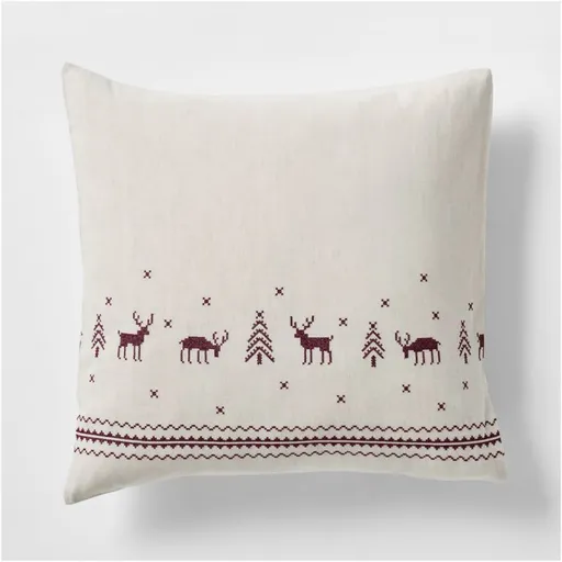 Holiday Reindeer Embroidered Cotton Linen Cross Stitch Natural Euro Bed Pillow Sham | Furnzy.com - Shop local furniture stores in one place