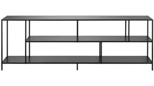 A must-have for living areas and entertainment spaces, this Zinnia 70" TV stand with metal shelves sets the stage for the big game, a movie marathon, or that season finale everyone's been talking about. Crafted from steel, it strikes a clean-lined silhouette and boasts a blackened bronze finish paired with matching metal shelves for a look that blends with nearly any color palette.