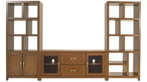 Divide and conquer with the Granthom 3-pc. wall unit crafted of solid poplar with birch veneers. The 60" TV console and pair of open towers enable you to customize your entertainment space. Wood-framed glass doors and see-through compartments add to the visual transparency of this flexible wall unit.