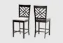 Caroline Grey Fabric Upholstered + Espresso Brown Finished Wood 25" Counter Height Stool Set Of 2 | Armless