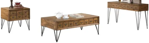 The Boone occasional table set is the only thing missing in your living room! This trio includes a coffee table and two end tables, all living room staples. The rectangle coffee table comes with two, spacious drawers; ideal for keeping your remotes and magazines all in one spot.