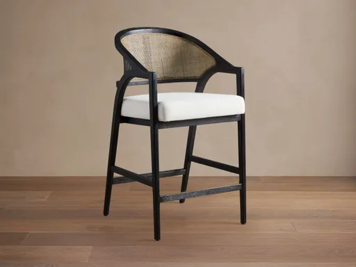 With a softly curved back, rattan caning, and chic flared legs, our Aimee Dining Collection is thoughtfully crafted to capture the styles of both classic French antiques and iconic midcentury modern designs. Each frame is made from solid oak wood paired with a generously upholstered cushion resulting in welcoming comfort that complements any aesthetic.