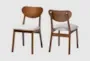 Damara Mid-Century Modern Grey Fabric Upholstered & Walnut Brown Wood Dining Chair Set Of 2 | Oak | Armless | Furnzy.com - Shop local furniture stores in one place