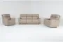 Experience unparalleled comfort and style with the Caspian Natural Beige 189" 6 Piece Power Reclining Modular Living Room Set. This set includes a sofa, loveseat, and recliner, all upholstered in soft fabric for a soothing and inviting feel. The power reclining feature and built-in USB ports make it perfect for modern living.