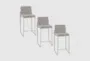 Elevate your dining or kitchen space with the Ian Grey 26" Fabric + Stainless Steel Metal Frame High Back Counter Height Stool Set of 3. Featuring a modern design, these armless stools offer a sleek look that complements any decor. The grey fabric upholstery adds a soft touch, while the stainless steel metal frame provides sturdy support.
