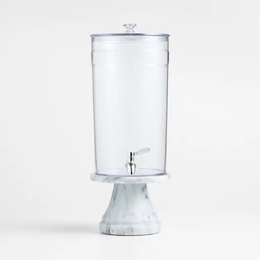 Crafted of worry-free acrylic, this drink dispenser is a festive necessity for outdoor occasions and casual gatherings. The clear dispenser shows off infused water, lemonade, punch and wine, while allowing you to easily spot when a refill is needed. A spigot ensures a perfect pour every time, and when it's time to when it's time to add more liquid or ice, simply lift the lid. Our acrylic drink dispenser sits pretty on a handsome stand of polished white marble, elevating the dispenser so glasses can fit under the spigot.