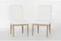 Elevate your dining experience with the Freya Natural + White Performance Boucle Upholstered Side Chair with Tall Back Set of 2. These chairs blend Scandinavian style with the durability of high performance fabric, ensuring they are both stylish and practical. The combination of natural wood and soft boucle fabric creates a serene and inviting atmosphere for your dining room.