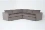 The Basil Grey Brown Fabric Modular 98" 3 Piece L-Shaped Sectional offers a stylish and comfortable addition to any living room. With its symmetrical design and track arms, this sectional is perfect for lounging and entertaining. The loose reversible back cushions provide versatility and ease of maintenance.