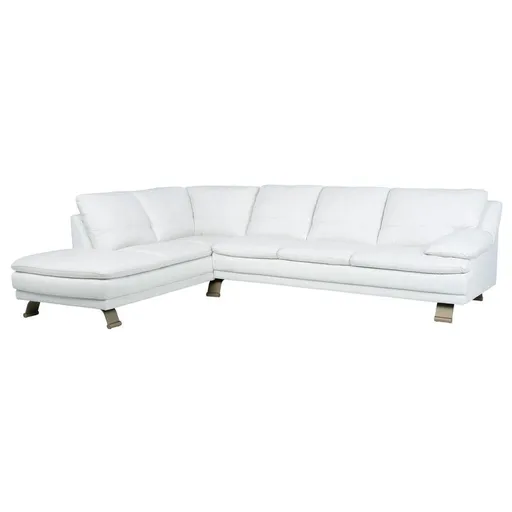 You'll love the clean, elegant look of the Rio White II Leather Corner Sofa w/Left Chaise. Made with 100 percent leather where the body touches, this gorgeous modular couch features a striking white color that contrasts beautifully with its chrome metal legs. With deep, wide seating and lumbar support, it's as comfortable as it is stylish.