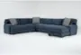Aidan VI Modular Blue Fabric 4 Piece 142" Sectional With Right Arm Facing Chaise | Loose Reversible Back