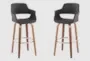 Bring a touch of vintage flair to your dining room or kitchen with this set of two modern barstools. Featuring a swivel design and upholstered in charcoal fabric, these barstools offer both comfort and style. The bentwood legs and round chrome metal footrest provide sturdy support while adding a sleek, mid-century modern look.