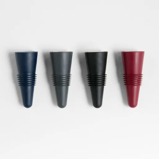 Keep your favorite wines as tasty as the day they were uncorked with these easy-to-use stoppers. Made of silicone and stainless steel in four colors, the stoppers have a conical design to accommodate bottle openings of varying sizes and ridges to provide a secure fit.