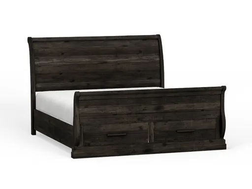 The Park Bed combines classic design with practical functionality for a stylish and efficient bedroom centerpiece. Available in both king and queen sizes, this bed is crafted from durable MDF and engineered wood in a rich dark gray wash that highlights its prominent wood grain. The elegant sleigh design adds a timeless touch, while black hardware complements the overall look with a sleek, modern contrast. Perfect for both traditional and contemporary spaces, the Park Bed offers a refined yet versatile style.