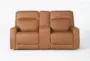 Thornton Saddle Brown Top Grain Leather 74" Power Zero Gravity Reclining Console Loveseat with Power Headrest Power Lumbar Wireless Charging Storage Pop Out Cupholders & USB | Furnzy.com - Shop local furniture stores in one place