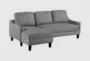 The Lester Grey Fabric 83" Convertible Futon Sofa With Chaise & Black Legs is a versatile addition to your living room. Upholstered in 100% polyester, this modern sofa features a reversible chaise that allows you to customize your seating arrangement. The sleek grey color and black legs add a contemporary touch to any space.