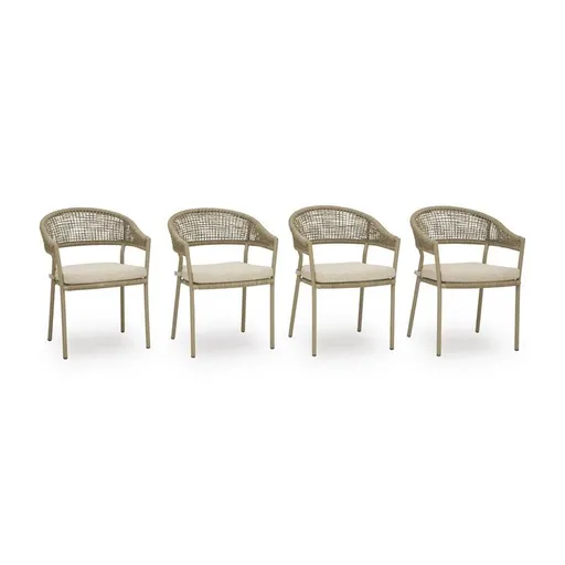 Whether decking out your deck or patio or making a splash by the pool, this outdoor arm chair with cushion is all about easy-breezy outdoor living. Its gently curved back features a nicely neutral polyester rope wrap over a sturdy, rust-resistant aluminum frame that’s sure to weather the seasons beautifully. The cushion is covered in high-performance Nuvella® fabric that withstands the elements and is oh-so-easy to clean.