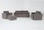 3. Basil Grey Brown Fabric 4 Piece Queen Memory Foam Sleeper Sofa Bed Loveseat Armchair & Ottoman Set