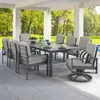 Soho Slate Grey Aluminum with Cushions 9 Piece Combo Dining Set 100 x 44 in Rect Slat Top Table