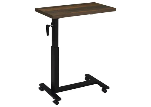 Transform your bedroom into a functional retreat with this height-adjustable C-table, designed specifically for use while reclining in bed. The 28-inch wide wood-inspired top offers ample space for working, dining, or reading. Featuring a smooth hand-crank mechanism, the table adjusts from 27 to 39 inches in height for personalized comfort. Its heavy-duty steel base, finished in a matte black powder coat, ensures durability and stability, making it the perfect bedside companion.