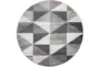 Enhance your living space with the 5'3" Round Fiber Rug-Modern Triangle Greys And White by Surya. This modern, low pile rug features a striking geometric design in various shades of grey and white, making it a versatile addition to any room in your home. Made from 100% polypropylene, this durable rug is perfect for high-traffic areas like the dining room, living room, or any indoor space.