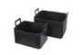 natural black 8 inch metal wood rectangle basket set of 2 | handles | handles