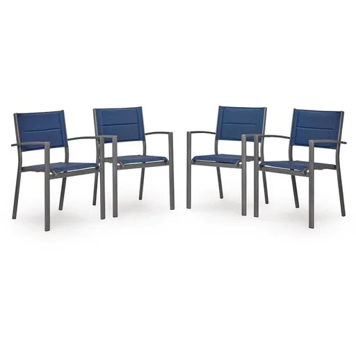 Bring casually cool style outdoors with this sling arm chair. Sturdy aluminum construction and a goes-with-anything gray finish make it the perfect patio or porch companion. A comfortably padded sling seating area in a beautiful blue hue completes the look.