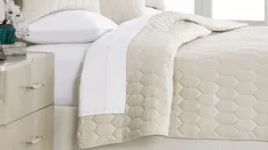 If you love embroidered details and velvety fabrics, the Niagara 4-pc. Quilt Set is the perfect layering piece or alternative bed cover for you! The elongated diamond pattern pairs effortlessly with existing styles and d_cor, while the soft ivory polyester velvet adds a soft, luxurious touch. Included is 1 quilt and 3 euro shams.