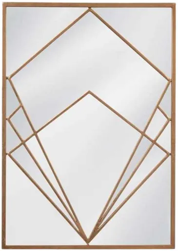 The Jase Wall mirror features a thin metal frame finished in gold with gold triangular overlay design. The mirror can hang horizontally or vertically. This wall mirror is sure to make a statement in any room.