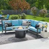 Montecito Charcoal Aluminum with Cushions 4 Piece Sectional Group 48 in D Sintered Fire Pit Table | Furnzy.com - Shop local furniture stores in one place