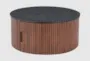 Introducing the Kaira Mid-Century Modern Coffee Table, a stylish addition to your living room. This 31-inch round storage drum coffee table combines form and function with its sleek black and walnut finish. The unique design is perfect for those who appreciate modern aesthetics and need extra storage.