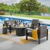 Chelsea Textured Black Aluminum and Weathered Teak Outdoor Wicker Concealed Cushions 4 Piece Loveseat Group 48 in D Fire Pit Table | Furnzy.com - Shop local furniture stores in one place