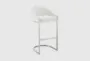 The Lorian 26" Counter Height Stool in brushed stainless steel metal with white faux leather is a perfect addition to your dining room. Its modern design and quality materials provide both durability and style. The stool's tall structure offers comfortable seating for your counter-height tables.