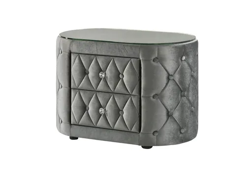 Discover the pinnacle of luxurious comfort and innovative design with our premium night stand, a true centerpiece to any modern bedroom sanctuary. Elegantly crafted with a plush, tufted upholstery, this night stand combines sophisticated style with unparalleled functionality. A sturdy glass top provides stability and the rounded sides and sparkling knobs add refined finishing details.