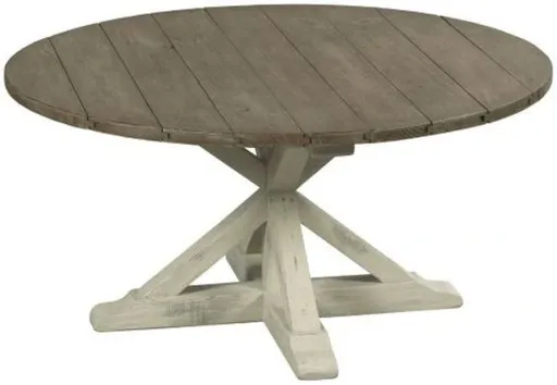The Hammary® Reclamation Place Sundried Natural Trestle Round Cocktail Table with Willow Base brings casual elegance to your living space. Its sundried natural finish enhances the wood’s beauty, while the willow trestle base provides sturdy appeal. Perfect for gatherings, this table adds timeless farmhouse-inspired character and functionality.