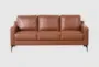 The Fletcher Brown Faux Leather 78" Sofa combines casual style with modern elegance, making it a perfect addition to any living space. Upholstered in a warm brown faux leather, this sofa offers both comfort and durability. Its sturdy solid wood frame and modern black metal legs ensure lasting support and stability.