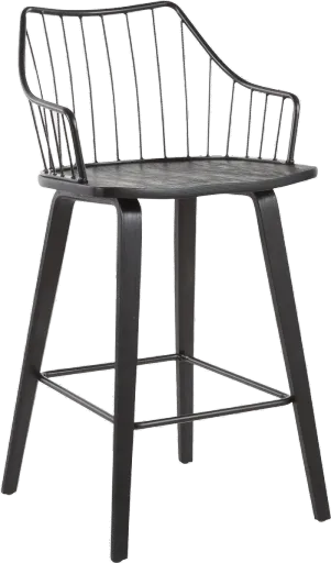 The Winston black wooden counter stool will be perfect for your contemporary farmhouse-inspired space! It features a stylish wood seat and legs complemented by a metal spindle backrest. Available in several colors, choose the one that suits your home! Available for Online Purchase Only. Assembly required. This product ships direct from the manufacturer, so RC Willey Delivery is not available.