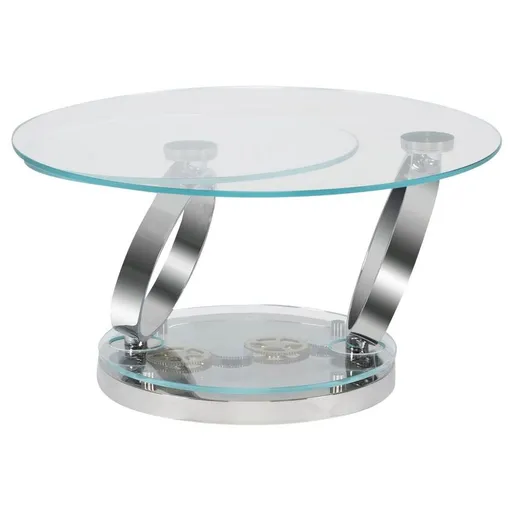 The Dalli Coffee Table is the picture of sophistication with its polished steel base, tempered glass top, and chrome steel frame. This swivel cocktail table features a modern style and dimensional appeal that will add a bit of character and a look of elegance to any space.