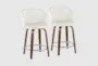 The Jrane 24" Height Counter Height Stool with Swivel in Walnut Wood and White Faux Leather is perfect for enhancing your dining room with a touch of contemporary style. The round chrome metal footrest adds a modern touch, while the white faux leather seat provides comfort and sophistication. This set of 2 stools is ideal for any kitchen or dining area.