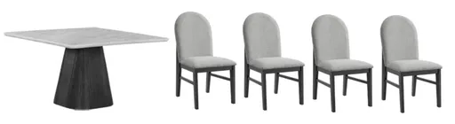Dine in style with the exquisite Edison 5-Piece Dining Set, where modern sophistication meets timeless elegance. The stunning marble-like tabletop creates a captivating focal point, effortlessly blending with the sleek, robust base that adds a touch of boldness to your dining space.