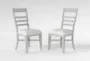 Elevate your dining experience with the Ozzie Grey Upholstered Ladderback Dining Side Chair Set Of 2. These chairs are perfect for any farmhouse-inspired dining room or kitchen. The solid hardwood frame and 100% polyester performance fabric ensure durability and comfort.