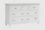 The Catherine White 7-Drawer Dresser brings a touch of coastal charm to your bedroom with its elegant White Dove finish. Crafted from MDF and solid Asian hardwood, this dresser combines durability with a stylish design. The seven drawers, including three felt-lined top drawers, offer ample storage space for all your essentials.