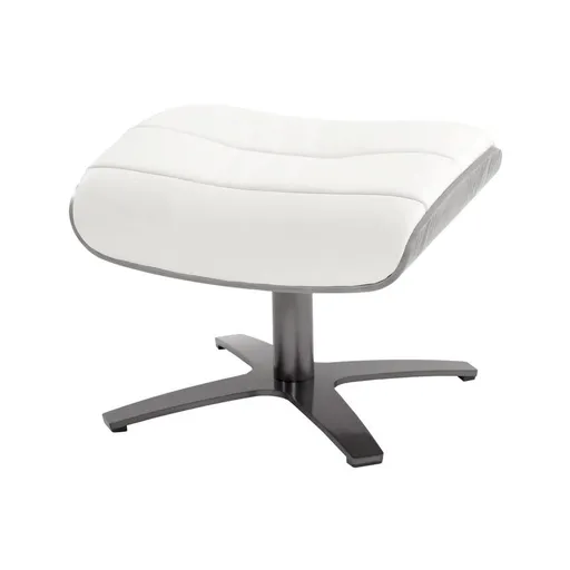 The mid-century modern inspiration of the Enzo Pure White Leather Ottoman completes your bedroom or living room. This piece is upholstered in pure white genuine leather with bent wood sides and a 4-star base.