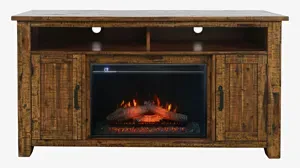 Elevate your living space with the Cannon Valley TV Stand w/ Electric Fireplace - a 60" masterpiece that effortlessly combines industrial chic with modern functionality. This console features a robust design and a rustic, rich finish that adds character to your home.Designed with your convenience in mind, the Cannon Valley console includes cable management cutouts in the back, ensuring a clutter-free entertainment area. Two doors open to reveal ample storage space for all your media essentials, while a built-in soundbar shelf offers a sleek solution for your audio needs.The electric fireplace is the focal point of this exceptional piece. Energy-efficient LEDs create a lifelike fire effect, setting the perfect mood for any occasion. Plus, you can enjoy the ambiance without the heat.